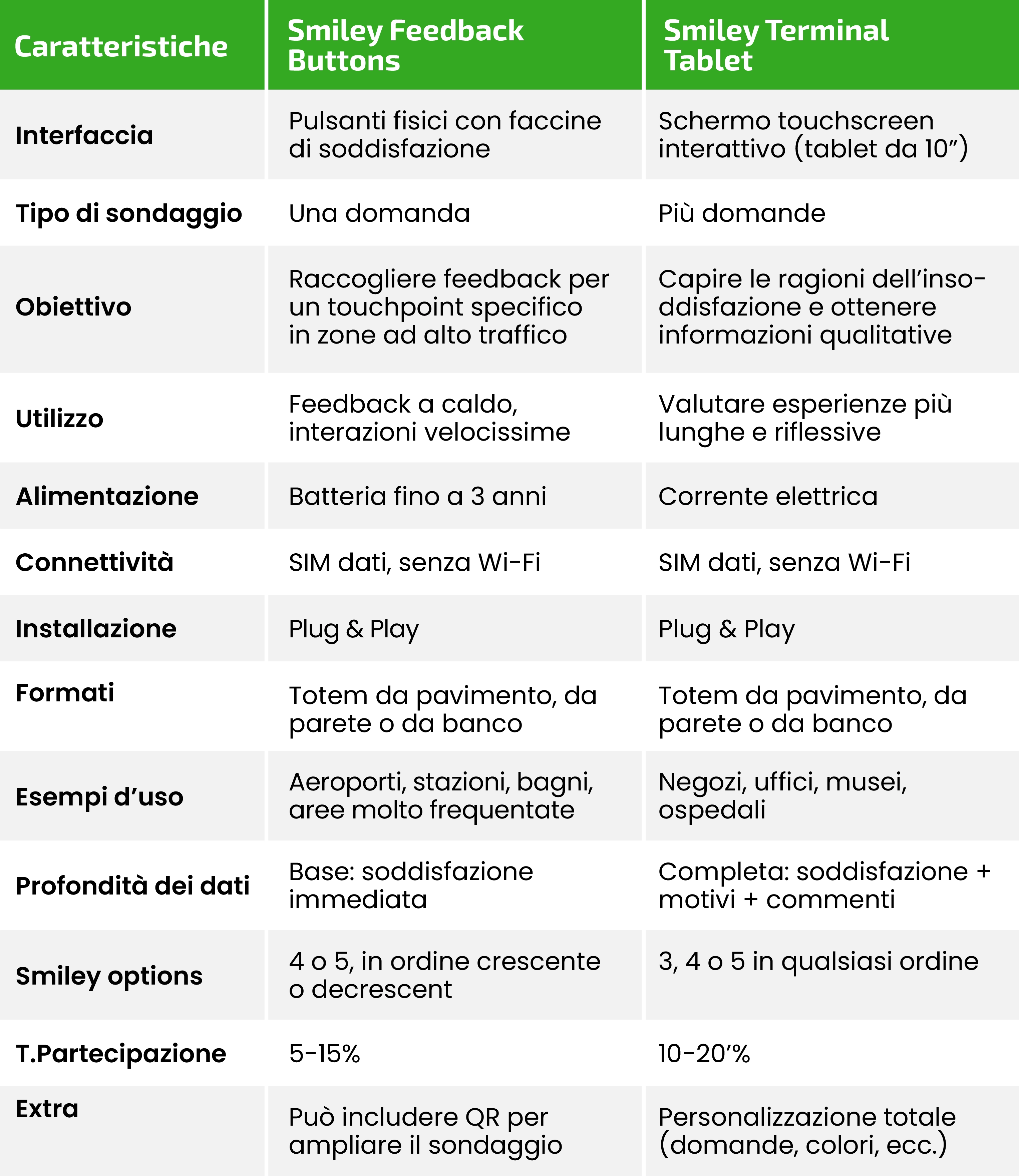 Confronto tra Smiley Feedback Buttons e Smiley Terminal Tablet
