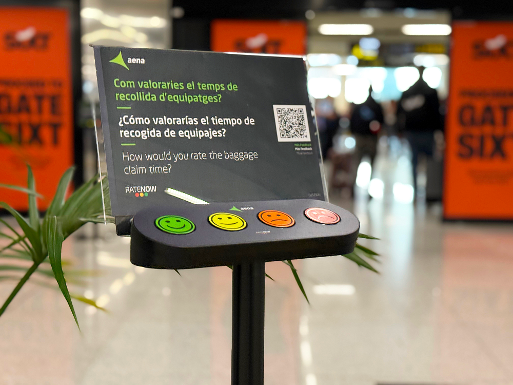 In RateNow lavoriamo con i 38 aeroporti della rete AENA per monitorare continuamente l'esperienza del passeggero. Collaboriamo sia con le autorità aeroportuali che con le aziende subappaltatrici di servizi — come pulizie, sicurezza, handling o sale VIP — che utilizzano i nostri dati per ottimizzare le loro operazioni e soddisfare gli standard di qualità e servizio.