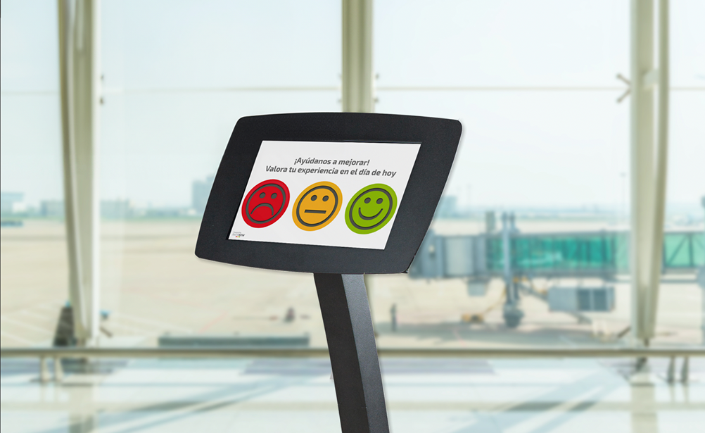 Per adattarci a ogni ambiente, utilizziamo diverse tecnologie di raccolta del feedback. I pulsanti fisici con faccine di soddisfazione, ad esempio, sono ideali per aree a passaggio rapido e massivo come i servizi igienici o i controlli. La loro semplicità e la fruibilità universale permettono di raccogliere fino a mille valutazioni giornaliere per punto, senza bisogno di connessione alla rete dell'aeroporto. Per aree più tranquille, come le sale VIP o le aree di attesa, utilizziamo terminali con schermo tattile che consentono di porre diverse domande e raccogliere commenti aperti. E per i servizi digitali come il WiFi o la prenotazione del parcheggio online, possiamo utilizzare sondaggi inviati via email o SMS, o integrati nell'applicazione.
